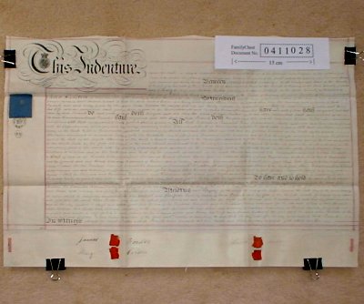 | Parchment : 1 sheet 41cm x 62cm, 3 signatures with wax seals and embossed stamps. | |||||||||||