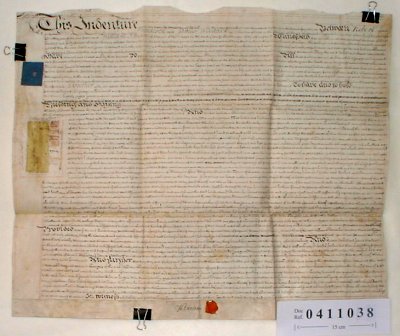 | Parchment : 1 sheet 56cm x 68cm - 1 signature with wax seal, duty stamp, small plan in margin. | |||||||||||