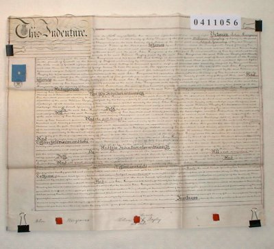 | Parchment : 1 sheet 60cm x 72cm 2 signatures with wax seals and duty stamp | ||||||||||||||