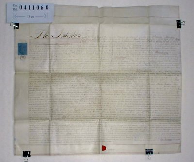 | Parchment : 1 sheet 57cm x 76cm with wax seal and duty stamp. | |||||||||||||||