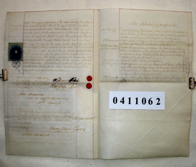 | Parchment : 2 sheets 26cm x 39cm 2 signatures, stamped, signed and sealed | ||||||||||||