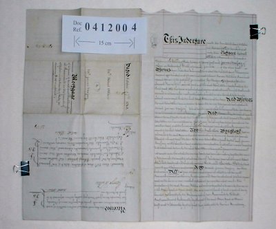 | Watermarked paper : 2 sheets 29cm x 47cm with 2 wax seals and duty stamp | |||||||||||