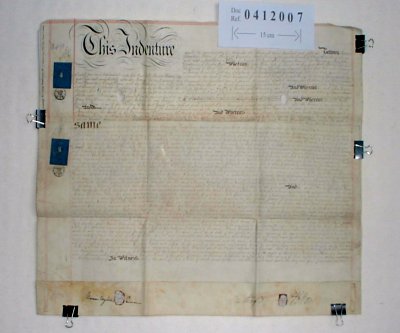 | Parchment : 2 sheets 51cm x 70cm with 2 wax seals and revenue stamp | ||||||||||||