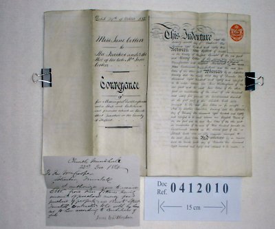 | Parchment : 4 sheets 23cm x 29cm with 1 wax seal and duty stamp. Includes a short hand-written note from Jane Whittingham of 1880. | ||||||||||||