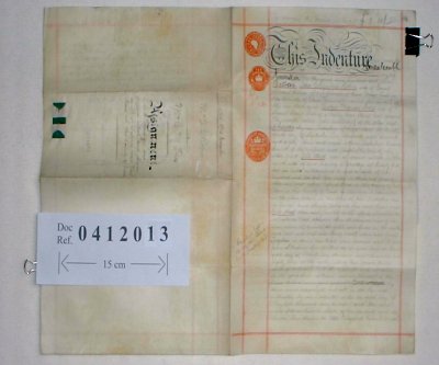 | Parchment : 2 sheets 26cm x 40cm 2 wax seals and duty stamps. | ||||||||||||