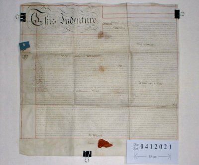 | Poor. Wax seal is smudged and duty stamp is coming loose. Discolouration is slightly worse than usual. However, this document is complete and legible throughout. | |||||||||||||