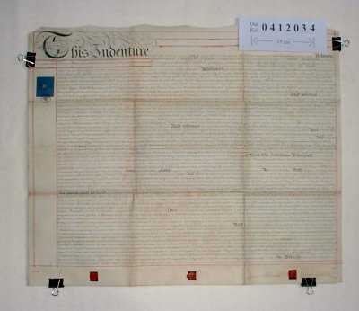 | Parchment : 1 sheet 60cm x 72cm with 3 wax seals and duty stamp. | |||||||||||