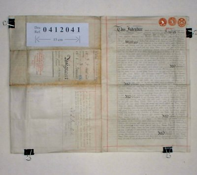 | Parchment : 2 sheets 47cm x 31cm signed with duty stamps. | ||||||||||||