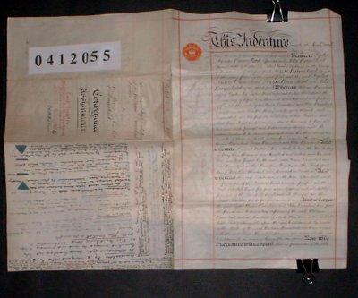 | Parchment : 28cm x40cm, 3 wax seals and signatures with revenue stamps. | |||||||||||||