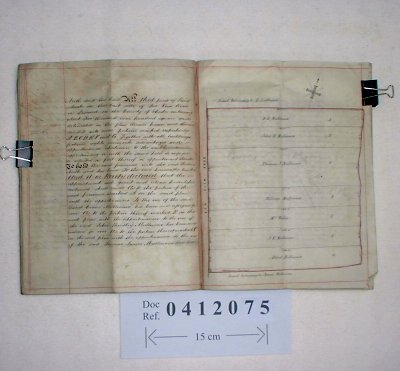 | Parchment : 8 sheets 23cm x 28cm with 10 wax seals and duty stamp. Includes plan of property. | |||||||||||||