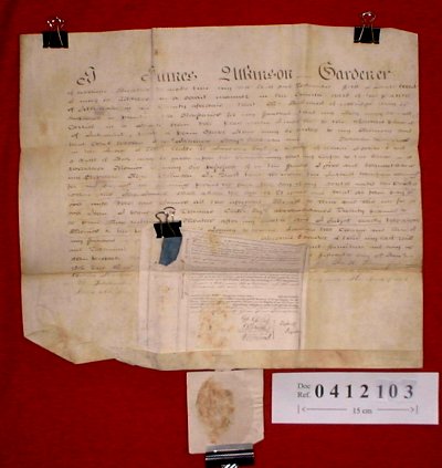 | Parchment : 1 sheet 43cm x 50cm with attached grant of probate and pendant seal. | |||||||||||