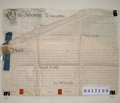 | Parchment : 4 sheets 60cm x 45cm, 2 red wax seals with signatures, and revenue stamps. | |||||||||||