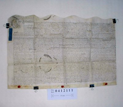 | Parchment : 1 sheet 50cm x 75cm with 3 wax seals and duty stamp. | |||||||||||
