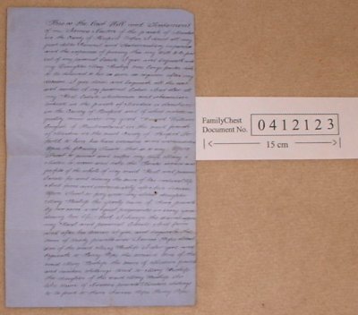 | Paper : 2 sheet 32cm x 20cm. This is a copy of a will made in 1844, but with no indication as to when the copy was made. | |||||||||||||