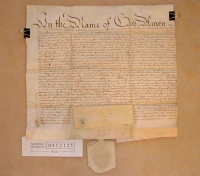 | Fair. The document has been badly folded but is otherwise in good condition. The probate seal is beginning to fall apart. | ||||||||||||