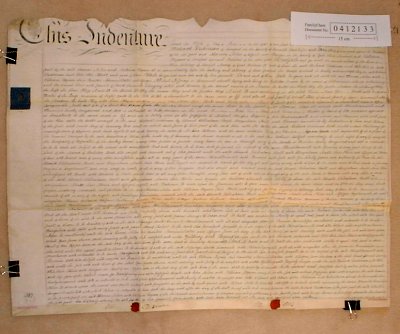 | Parchment : 1 sheet 59cm x 72cm with 2 wax seals and revenue stamp. | ||||||||||||