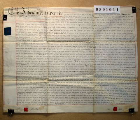 | Parchment : 1 sheet 57cm x 74cm with 2 wax seals, 2 signatures and revenue stamp | |||||||||||