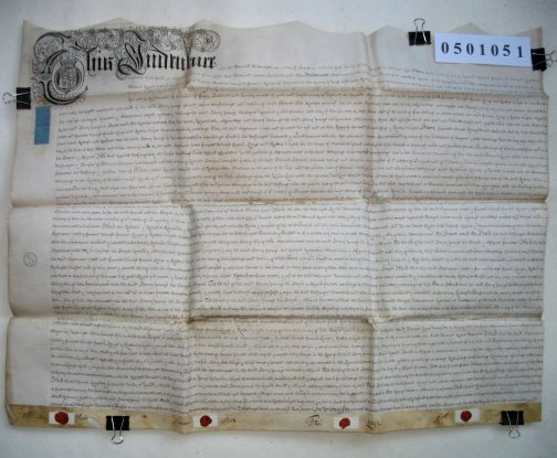 | Parchment : 1 sheet 61cm x 78cm with 4 wax seals, 4 signatures and revenue stamp. | |||||||||||||