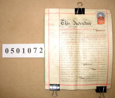 | Parchment : 4 sheets, manuscript on 3+ sides, 27cm x 21cm with 2 wax seals, 2 signatures and revenue stamp | |||||||||||||