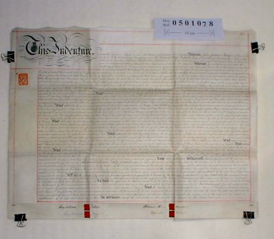 | Parchment : 1 sheet 57cm x 73cm with 4 wax seals and duty stamps. | |||||||||||