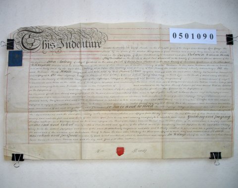 William HINDS of King David Street, Parish of St Paul Shadwell, Middlesex. Twine Spinner. John ANTONY of Angel Gardens, Parish of St Paul Shadwell, Middlessex. Gentleman. SUBJECT This is the first part of a contract of sale by Lease and Release in which William Hinds is selling property in the Parish of St Mary Stratford, Middlesex, to John Antony. It consists of a cottage in Wick Lane on a plot of 44ft x 55ft. William Hinds appears to own other adjoining property. Note that Doc. ref. 0502106 is the accompanying Release for this transaction. | |||||||||||||||
