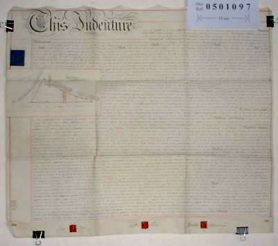 | Parchment : 1 sheet 64cm x 75cm with 3 wax seals and duty stamp. Includes a plan of the property. | |||||||||||||
