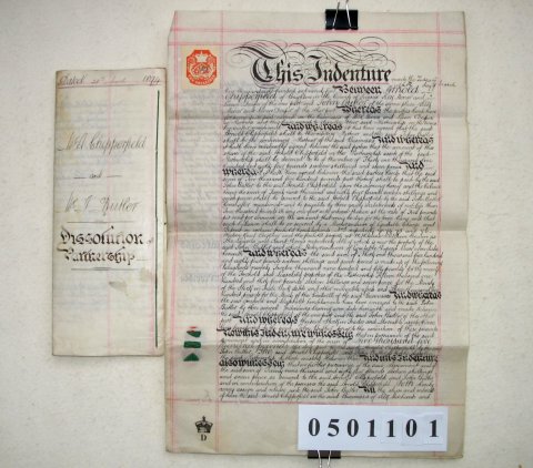 Arnold CHIPPERFIELD of Brighton, Sussex. Mercer and Linen Draper John BUTLER of Brighton, Sussex. Mercer and Linen Draper. SUBJECT We are told that the two parties have been partners in business for some years but that Arnold Chipperfield is now retiring. The partnership is to be dissolved but John Butler will continue trading. John Butler has to pay Arnold Chipperfield £31,584/16/7d of which he pays £2,500 immediately, and the balance over 3 years. It appears that the business operated from Numbers 74, 75 and 76 Western Road, Brighton, and that the business owned the freehold to this property. Included with this document is an earlier version of it which appears identical but contained many insertions and corrections. This earlier version appears to have been signed by both partners and stamped, but the revenue stamp was then cut off, presumably to invalidate it. | |||||||||||||