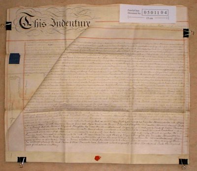 | Parchment : 2 sheets 59cm x 68cm with plan of the property. NB. This document has duty stamps but is not signed or dated, so presumably it was never executed. | ||||||||||||