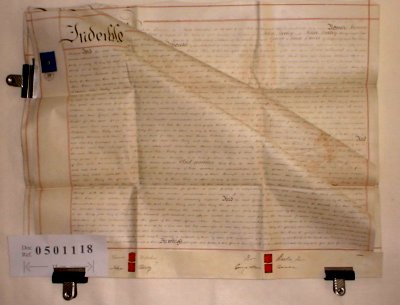 | Parchment : 3 sheets 59cm x 75cm With 4 wax seals and duty stamps | |||||||||||