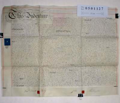 Thomas Beard Holy of Norton House, Derbyshire. Esquire. John Millington of Sheffield, Yorkshire. Hatter. SUBJECT Thomas Beard gives a lease for 800 year to John Millington at a rent of £18/10/0d per annum. The property totals 1235 square yards and is on the corner of Porter Street and Wilkinson Street. John Millington undertakes to build 3 good and substantial houses of 2 stories on the plot. NB. See also document reference 0501128 which appears to be identical. Document 0501127 contains some minor corrections and insertions, whereas 0501128 is the 'good' copy. Both are signed, sealed and stamped, so they both appear to be valid contracts. It is quite common to find a Lease and identical Counterpart Lease, so that is probably the case here, although neither are actually marked 'Counterpart'. | |||||||||||