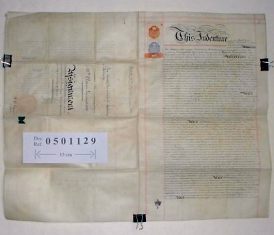 | Parchment : 1 sheet 55cm x 34cm with wax seals and duty stamps. | ||||||||||||||