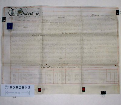 | Parchment : 1 sheet 58cm x 77cm with 4 wax seals and duty stamps. Includes a second indenture of Reconveyance of 1874 written on the back. | ||||||||||||||