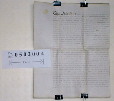 | Paper : 5 pages and cover sheet 41cm x 33cm. This is a copy of an original dated 01/08/1854, but a signed receipt on the cover sheet dated 15/09/1854 implies that it is contemporary with the original. | ||||||||||||
