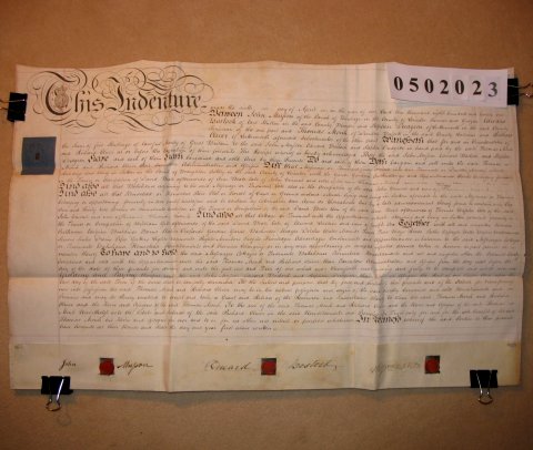 | Parchment : 1 sheet 48cm x 59cm with 3 wax seals, 3 signatures and revenue stamp. | |||||||||||||