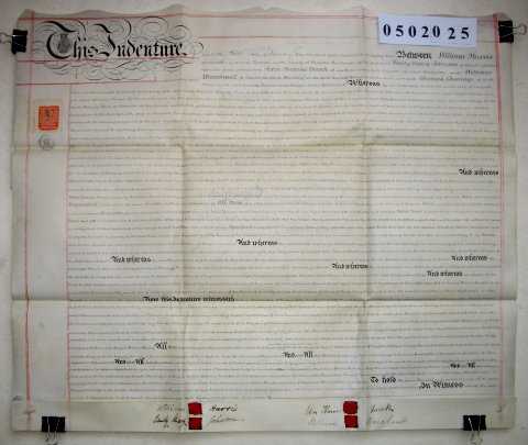 | Parchment : 1 sheet 60cm x 72cm with 4 wax seals, 4 signatures and revenue stamp | |||||||||||||