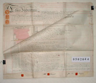 | Parchment : 2 sheets including Schedule and Plan of property. 70cm x 58cm with 3 wax seals and signatures. | |||||||||||