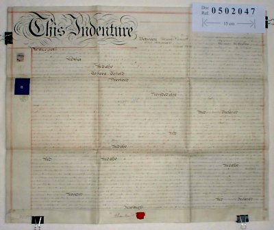 | Parchment : 1 sheet 59cm x 72cm with 1 wax seal and escutcheoned revenue stamp. | |||||||||||