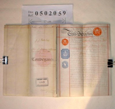 | Parchment : 22cm x 28cm 3 Sheets and back cover. The document is labelled 'Duplicate' but is signed, sealed and carries revenue stamps in the normal way. | |||||||||||