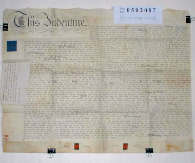| Parchment : 1 sheet 62cm x 80cm with 2 wax seals and escutcheoned revenue stamp. (There is a separate small related manuscript note included). | |||||||||||||