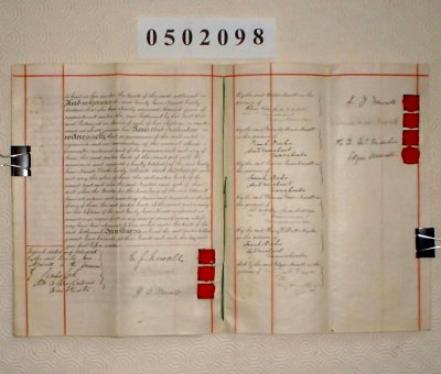 | Parchment : 4 sheets including cover 22cm x 28cm. 4 wax seals and signatures, revenue stamp. | ||||||||||||