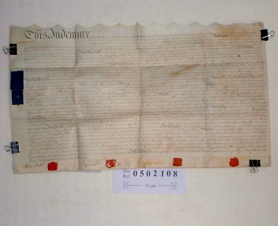 | Parchment : 1 sheet 43cm x 74cm with 4 wax seals and revenue stamps. | |||||||||||