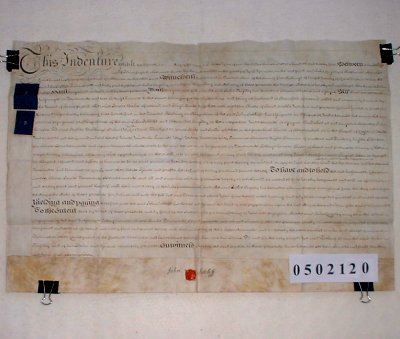 | Parchment : 1 sheet 43cm x 61cm wax seal, signature and revenue stamp. | ||||||||||||