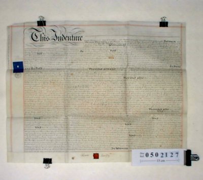 | Parchment : 68cm x 55cm 1 sheet with wax seal, revenue stamp and signature. | |||||||||||||