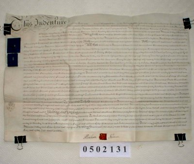 | Parchment : 1 sheet 55cm x 38cm with wax seal and revenue stamp. | |||||||||||