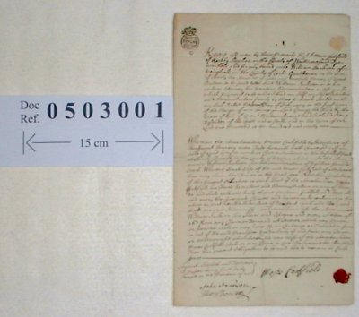 | Paper : 1 sheet 31cm x19cm with 1 wax seal and revenue stamp. | ||||||||||||