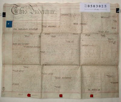 | Parchment : 1 sheet 66cm x 79cm, with 3 wax seals and revenue stamp. | ||||||||||||