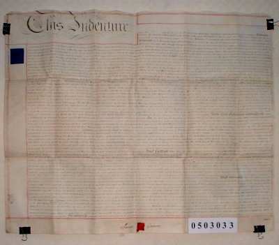 | Parchment : 1 sheet 65cm x 77cm with wax seal and signature. Revenue Stamp. | ||||||||||||