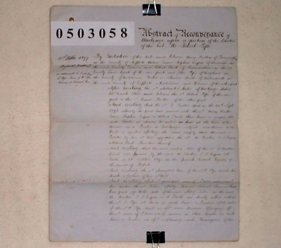 Mary Barker of Framlingham, Suffolk. Widow. James Stephen Capen of Bealings, Suffolk. Farmer. Robert Flick of Saxmundham, Suffolk. Farmer. John Pipe of Kingsland, Middlesex. Baker. Charles Smith of Halesworth, Suffolk. Auctioneer and Valuer. Daniel Barker (deceased). Robert Pipe (deceased) SUBJECT This document is titled "Abstract of Reconveyance of mortgage upon a portion of the Estates of the late Robert Pipe" and is a solicitor's summary of the original reconveyance of 11/10/1877. The summary is not explicitly dated but, being written on paper watermarked 1874, is probably contemporary with the original. | |||||||||||