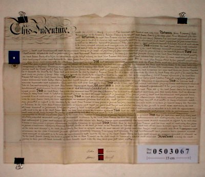 | Parchment : 68cm x 50cm 1 sheet with 2 wax seals, revenue stamp and signatures. | |||||||||||