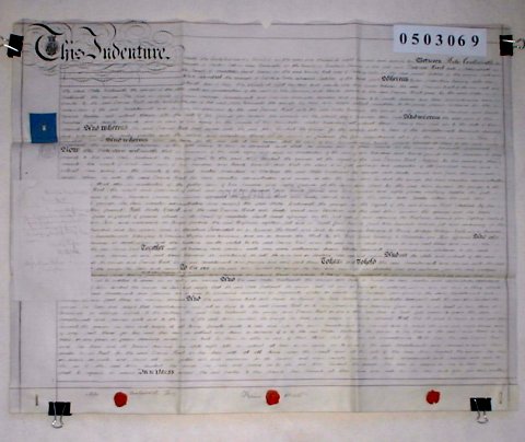 | Parchment : 1 sheet 60cm x 73cm with 3 wax seals, 2 signatures, revenue stamps and a short paper note attached. | |||||||||||